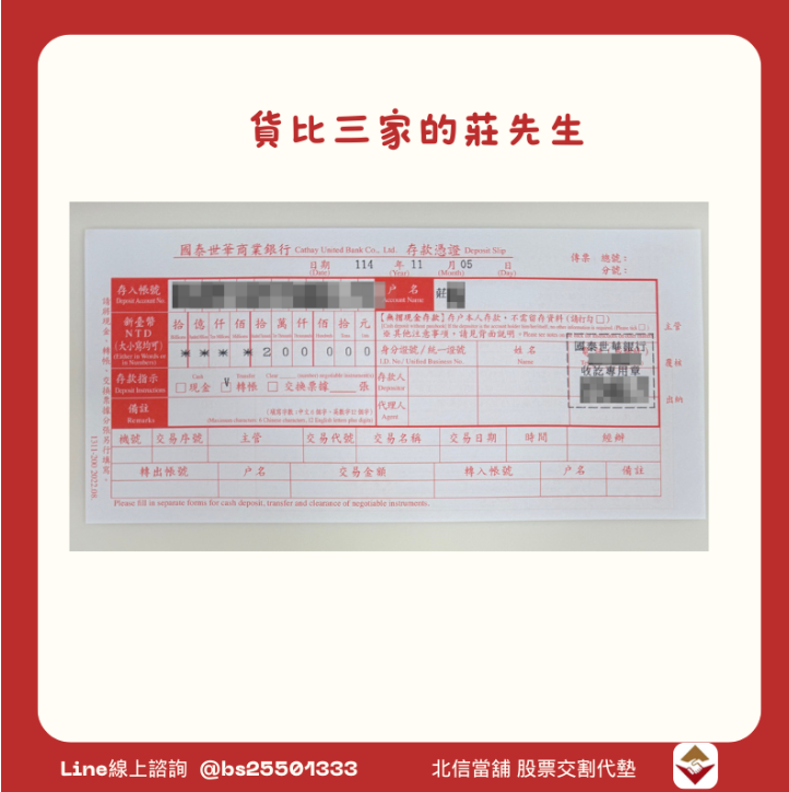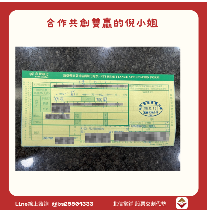 股票交割代墊個案:黃先生不願設定動保,改找北信順利完成交割
