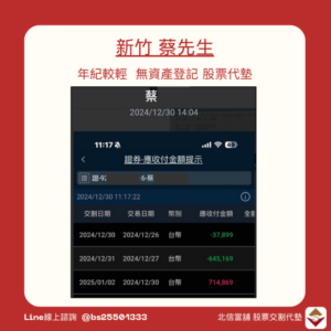 若因資金不足而面臨交割困難,建議選擇北信當舖的股票交割代墊服務: