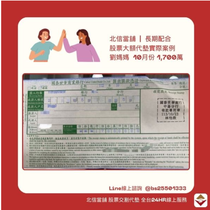 劉媽媽長期配合:北信當舖股票交割代墊1700萬助力實現目標