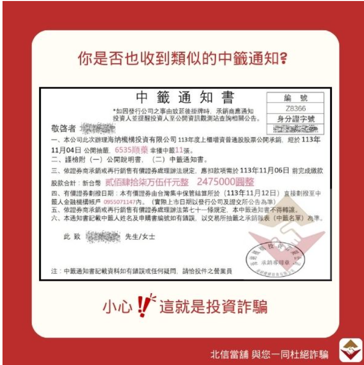 金融圈專員險遭投資詐騙!北信專員呼籲小心投資陷阱
