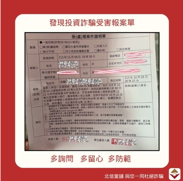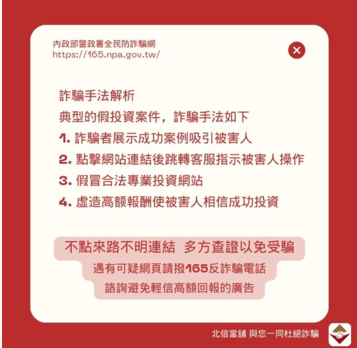金融圈專員險遭投資詐騙!北信專員呼籲小心投資陷阱