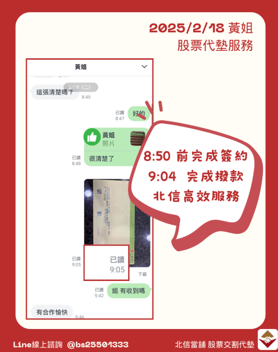 許多客戶已經透過北信的專業服務獲得即時資金支援,確保財務靈活度。在本案例中,客戶在2/18上午8:42抵達醫院完成簽約,不到22分鐘(9:04)即收到340萬元貸款,充分展現北信的高效與便利。