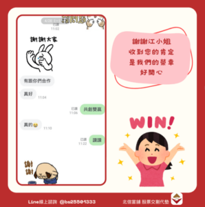而北信的做法讓他感受到不同之處:「你們很明確在處理股票的代墊部分,溝通流程簡單,條件也清楚,這次合作之後,若還有需要一定會再找你們。」